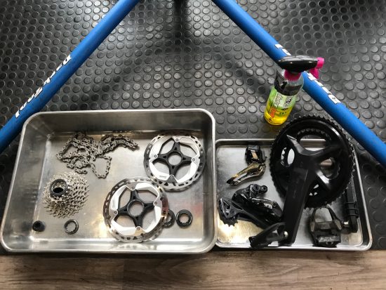 O/H 投稿日 2026年2月24日 カテゴリー ブログ Emonda SLRをO/Hご依頼、 ヘッド、BBの分解クリーニング、 ブレーキパッドも残量が少なく新品に交換、 距離を乗られるのでブレーキオイルも交換。 チェーン、スプロケット、ブレーキローター、ディレーラー、クランク回りも 取り外しクリーニング。 ホイールも振れ取り、フリーも分解清掃グリスアップ。 定期メンテナンスで安心安全サイクリングをお楽しみ下さい。 ご依頼ありがとうございました。 秘境の郷O/H処 キッド